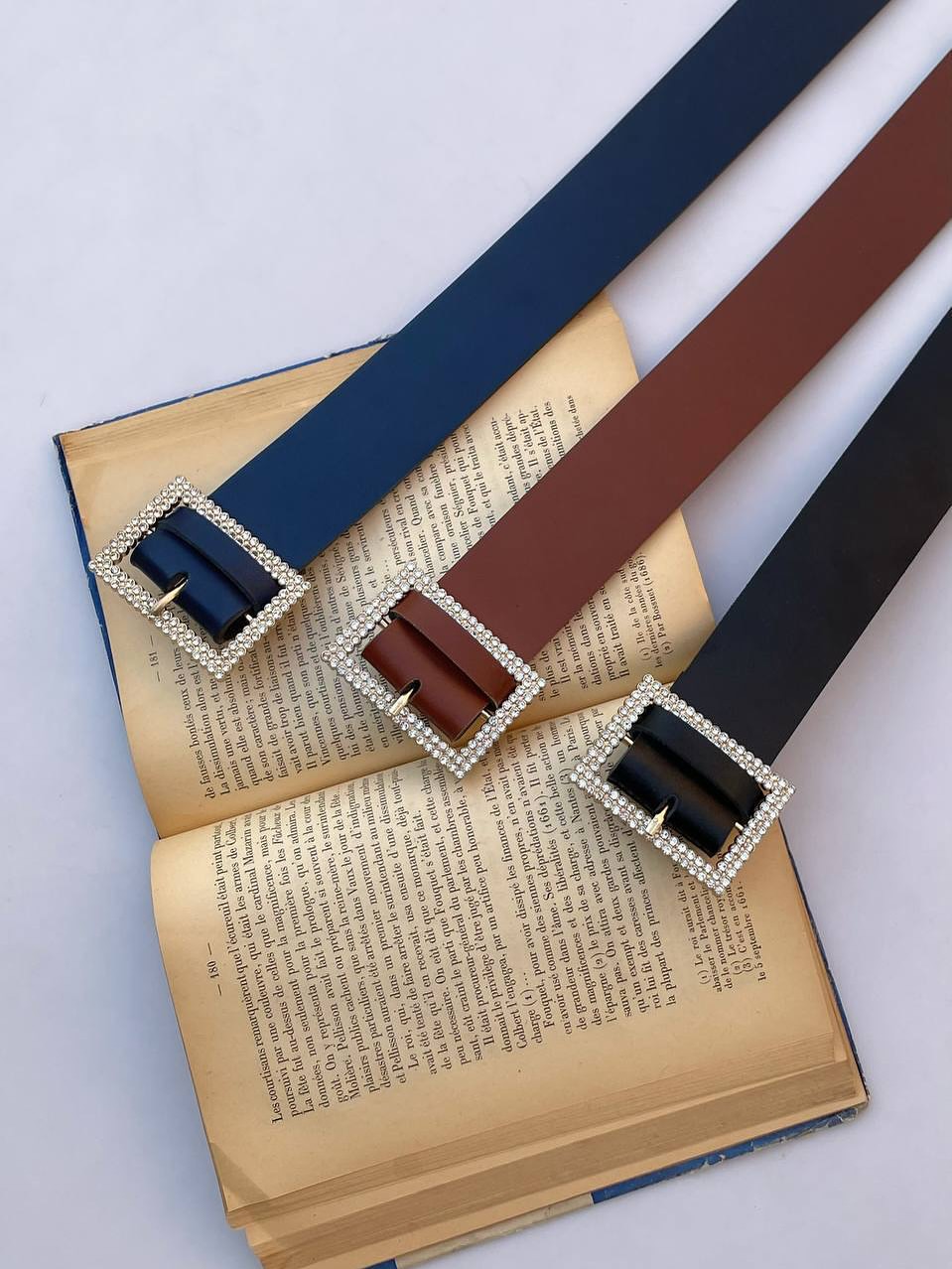 کمربند پهن نگینی با عرض ۵ سانت و قد ۱۱۰ سانت، با قلابهای طلایی و نقرهای.